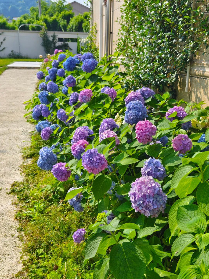 窗下栽两排绣球,初夏便捧出硕大的花团。