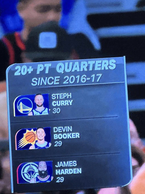 库里30轮番一、布克哈登王人为29次排在比肩第二。