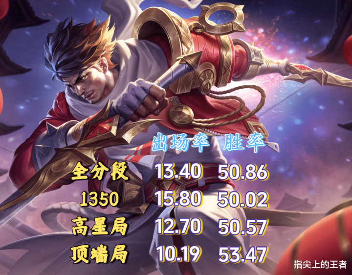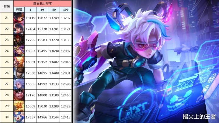 排名11到20的英雄中,依然见到了哪吒的身影,照旧和边路一样的问题,刚刚镌汰不说,禁用率高,出场率没那么高,加上高端局中哪吒思单独飞身后排难度高,是以哪吒的战力就很难打上去。
