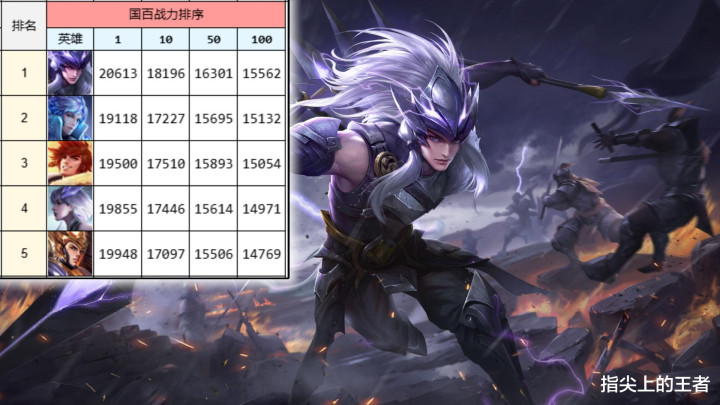 国百战力前五,区别是马超、诸葛亮、裴擒虎、镜和杨戬,其中马超、诸葛亮和杨戬齐是双位置英雄,在打战力方面有着先天的上风。